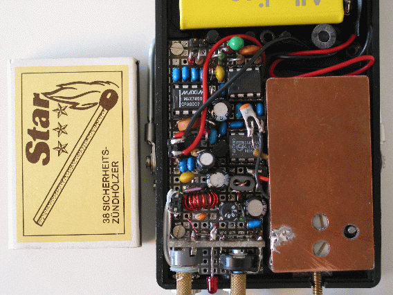 Für Einzelstücke haben sich bei mir zwei Methoden gut bewährt. Will man noch experimentieren, so wählt man einen relativ großflächigen Aufbau auf einer Streifenrasterplatine. Und zwar werden alle Bauteile auf der Leiterseite stumpf aufgelötet. Man sollte die Anschlußdrähte nicht durch die Löcher stecken! Denn dann lassen sich die Bauteile ohne Kraftausübung wieder entfernen, ohne dass sich die Leiter von der Platine ablösen. Für endgültige Einzelstücke verwende ich gerne doppelseitige Punktrasterplatinen auf Epoxydbasis mit durchkontaktierten Lötaugen. Von der einen Seite werden die Bauteile in die Löcher gesteckt; auf der anderen werden sie verlötet und mit Fädeldraht verbunden. Das ist zwar eine Sisiphusarbeit; sie erlaubt aber höchste Packungsdichte, die nur noch von SMD-Aufbauten übertroffen werden kann. Und solange wie bei unserem Empfänger keine all zu hohen Frequenzen vorkommen, ist so ein Aufbau elektrisch unkritisch. Nachträgliche Änderungen können jedoch leicht zur Qual werden. Also nichts für Anfänger!