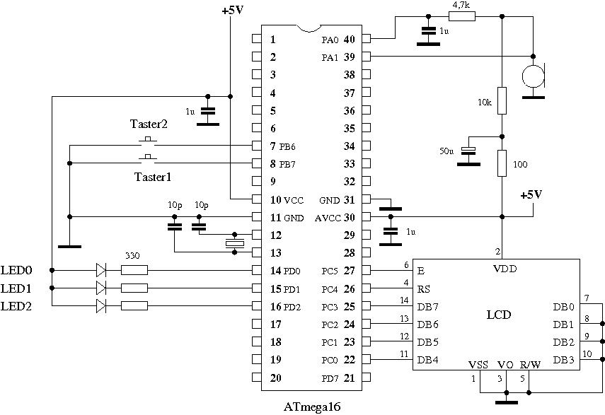 Mit dem Mikrokontroller ATmega16 von Atmel lässt sich ein billiger, aber leistungsfähiger Decoder für Morsezeichen verwirklichen. Dank des eingebauten Vorverstärkers werden nur sehr wenig zusätzliche Bauteile benötigt: eine LC-Anzeige, eine Mikrofonkapsel, ein paar Widerstände und Kondensatoren, zwei Taster und eventuell ein Quarz. Trotzdem ist auch bei schlechtem SNR noch ein Dekodierung möglich. |